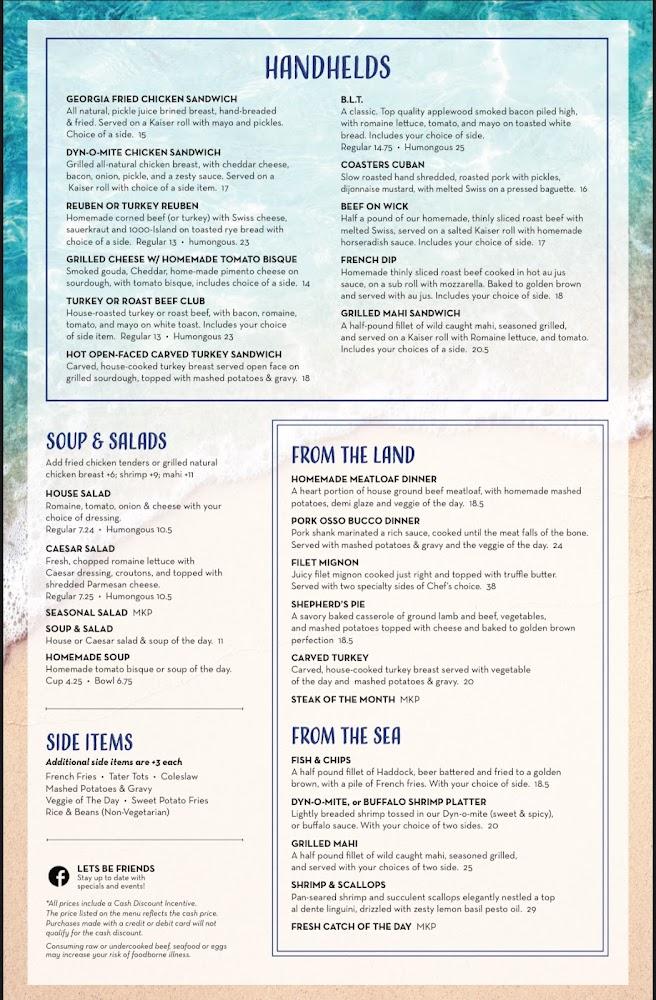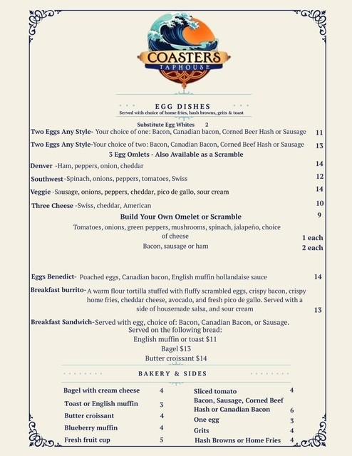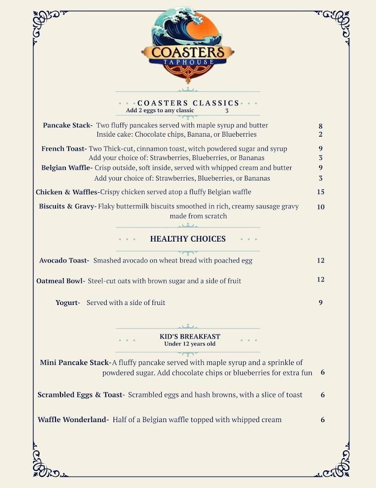 Coasters Taphouse offers a diverse menu influenced by local flavors. Breakfast, lunch, and dinner dishes are well-balanced and delicious. Breakfast options range from classic egg dishes to decadent pancakes and omelets.
